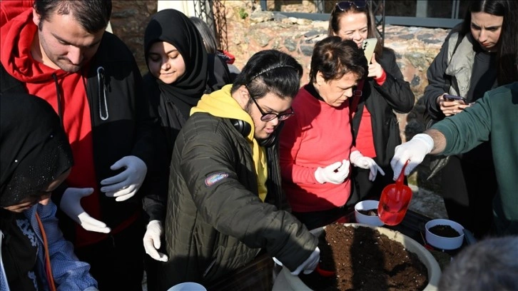 Ziyaret sırasında çiçekle ilgili bilgi alan çocuklar, kendileri için hazırlanan saksılara lale soğanı dikti.