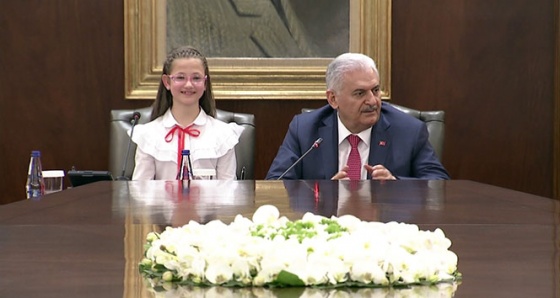 Başbakan Yıldırım, 23 Nisan Ulusal Egemenlik ve Çocuk Bayramı nedeniyle öğrencileri Çankaya Köşkü’nde kabul etti. Bakanlar Kurulu toplantısının yapıldığı salondaki koltuklara bakanları temsilen oturan çocuklarla tek tek sohbet eden Yıldırım, koltuğunu ise Pursaklar Altınova İlkokulu 5. sınıf öğrencisi 11 yaşındaki Esma Didesu Taşyürek’e devretti. Tüm çocukların 23 Nisan Ulusal Egemenlik ve Çocuk Bayramı’nı kutlayan Başbakan Yıldırım, “23 Nisan Çocuk Bayramı, Türkiye Cumhuriyeti kurulmadan önce kabul edilen ilk resmi bayram. TBMM, 23 Nisan 1920’de açıldığında ulusal egemenliğimiz, yeni Türkiye Cumhuriyeti’nin ilanı bütün dünyaya duyuruldu. Daha sonra İstiklal Savaşı’nda yetim kalan çocuklarımız için Cumhuriyetimizin kurucusu Gazi Mustafa Kemal Atatürk büyük bir bayram düzenledi. Bu şenlik çok büyük ilgi gördü ve 23 Nisan’ın bayram olarak kutlanmasına karar verildi. O gün bugün her yıl dünyada çocuklara mahsus bayram olarak kutlayan ve bütün dünya çocuklarına armağan eden bir ülkeyiz. Türkiye olarak yarınımızın güvencesi çocuklarımızın en iyi şekilde yetişmesi için bakanlarımız var gücüyle çalışıyorlar. Bugün de Bakanlar Kurulunu sizler oluşturuyorsunuz” ifadelerini kullandı.