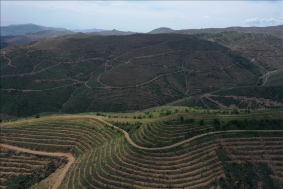 Dozerler ve iş makinelerinin kullanıldığı çalışmalarda 400 kişilik ekip, dik yamaçları yeniden ağaçlandırmak için teraslama işlemi yaptı ve fidanları dikti.