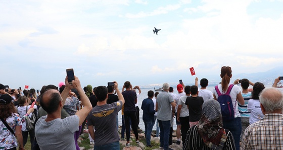 Konuşmaların ardından İzmit Körfezi semalarında sahne alan Solo Türk ekibi, binlerce kişinin dolduğu sahil üzerinde birbirinden tehlikeli akrobasi hareketlerini sergiledi.