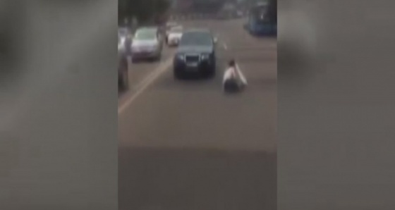 Bir süre sürüklenen öfkeli kadın da araçtan düşerek hafif yaralanırken bu ilginç anlarsa amatör kameraya böyle yansıyor.