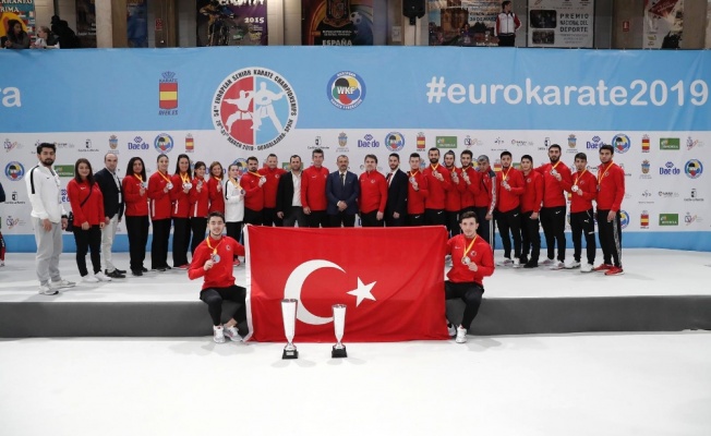 İspanya’nın Guadalajara şehrinde düzenlenen 54. Avrupa Büyükler Karate Şampiyonası’nı üç altın, dört gümüş ve dört bronz madalya ile tamamlayan Karate Milli Takımı, bir kez daha tarihi bir başarıya imza attı. 16 kategorinin 15’inde şampiyonaya katılan Milli Takım, 12 kategoride madalya maçı yaptı ve toplamda 11 madalya kazandı. Takımlarda madalya alan sporcularla birlikte şampiyonaya katılan 18 sporcunun tamamı kürsüye çıkarken, Türk spor tarihinde eşine az rastlanır bir olay gerçekleşti.