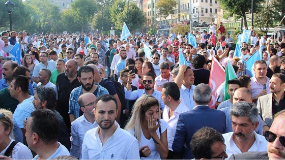 Türk ve Türkmeneli bayraklarıyla yürüyüşe geçen gruptakiler, tekbirlerle Sultanahmet Meydanı'na kadar yürüdü.