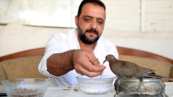 "Geldiğinde tanıyalım diye ayağına boncuk taktık"Aydın, kumruların diğer kuşlara oranla daha çok bakıma muhtaç olduğunu aktararak, "Karpuz çekirdeğini seviyor, verdiğimiz zaman sevgi gösterileri yapıyor. Muhabbet kuşu gibi kanatlarını çırpıyor. Yavaş yavaş uçuyor kısa mesafelere gidiyor tekrar geliyor. Ona alıştık kendisi de bize alıştı ancak serbest, istediği zaman gidebilir. Ayağına boncuk taktık, her gelen o mu değil mi demeyelim bilelim tanıyalım istedik. Bazen adına tepki veriyor. İnsanlardan hiç ürkmüyor. Elimden bırakıyorum, başıma ve omzuma konuyor." diye konuştu.
