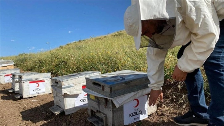 Bu kapsamda ilkbahar aylarında Hamur ilçesinin zengin bitki örtüsüne sahip arazilerinde arıcılık yapan bir vatandaş, gönüllü olarak Kızılay'a ait olan 60 kovanın her türlü bakımını yaptı.