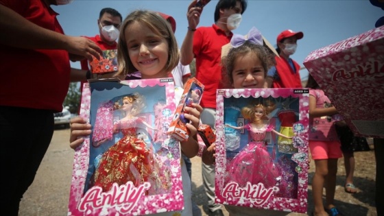 Türkiye'de yürütülen orman yangınlarıyla mücadeleye destek olmak için Antalya'ya gelen Kuzey Kıbrıs Türk Kızılay heyeti, mağdurlara yardım ulaştırmanın yanı sıra hediye oyuncaklarla da çocukları sevindirdi.