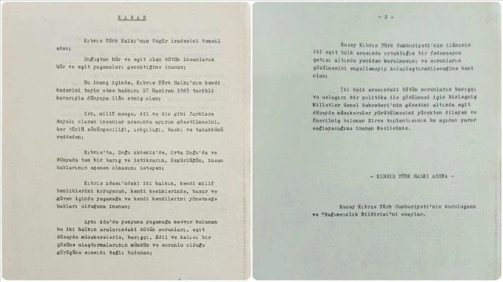 "Dışarıda KKTC'nin kurulduğuna dair konuşma yapılırken, ben Dışişleri'nde halen 'Bağımsızlık Bildirgesi' üzerinde çalışıyordum. Yazım tamamlanmıştı artık görevim bildirgenin son kontrollerini yapıp zarflara konularak yabancı ülkelere gönderilmesini sağlamaktı. Denktaş Bey'in kuruluş konuşmasının sesi, Dışişleri'ndeki ofisimin camından geliyordu. Orada olmak istiyordum ama işim vardı. Sonra işimi bitirdim ve ben de o coşkulu kalabalığa katıldım."
