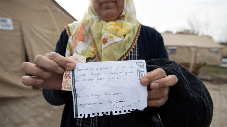 Kahramanmaraş merkezli 6 Şubat'ta meydana gelen 7,7 ve 7,6 büyüklüğündeki depremlerin ardından afet bölgesine Türkiye başta olmak üzere bütün dünyadan yardım eli uzanıyor. Depremden etkilenen 11 vilayete gönderilen yardım malzemeleri arasına bırakılan notlar ve diğer eşyalar, depremzedelere duygusal anlar yaşatıyor.
