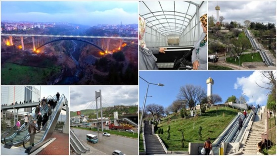 Karabük'te, kentin yüksek kesimlerindeki mahallelere çıkmakta zorlanan yayaların ulaşımını kolaylaştırmak için mahalleleri birbirine bağlayan yürüyen merdivenler, asansörler ve yaya köprüleri kullanılıyor.