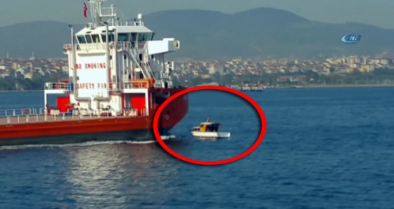 Kocaeli’nin Körfez ilçesinde bir gemi, balıkçı teknesine çarptı. Çarpışma anı saniye saniye görüntülenirken balıkçı teknesi ucuz kurtuldu.
