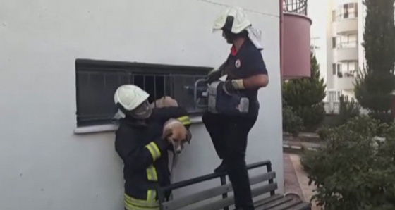 Denizli'nin Merkezefendi ilçesinde, bir apartmanın demir korkuluklarına sıkışan sokak köpeği, itfaiye ekipleri tarafından kurtarıldı.