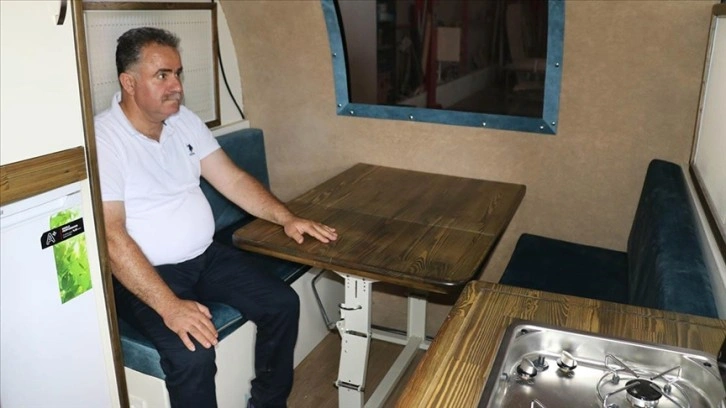 Yaklaşık 10 yıldır kentteki Organize Sanayi Bölgesi'nde cam kesme ve ısıcam ile ısıya dayalı macun makinesi imal eden Temel (51), izole yaşama yönelimin olduğu Kovid-19 salgını döneminde ailesi için çekme karavan yaptı.
