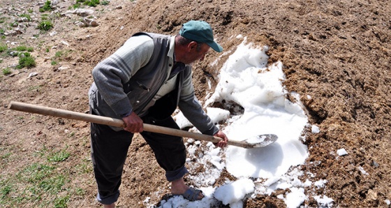 İlkbaharda saman ve keven otu ile bastırılıp koruma altına alınan kar, hayvanların günlük ihtiyacına göre üstü açılıp kesildikten sonra suluklara dolduruluyor. Vatandaşlar, atalarından ve dedelerinden öğrendikleri bu ‘kar basma’ geleneği sayesinde 2,5-3 ay süresince karı eritip, su haline getirebiliyor.
