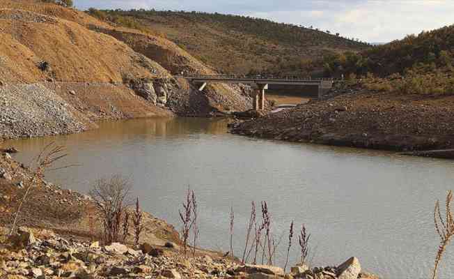Barajı besleyen kaynaktaki kuraklık etkileri belirgin şekilde gözleniyor. Drone ile çekilen görüntülerde de su kaynağının kilometrelerce akmadığı görülüyor. Yer yer suyun çekildiği barajda bazı yıkılmış eski yapılar da ortaya çıktı.