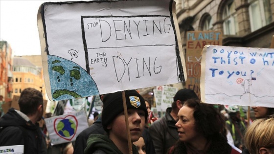Finsbury Sirki Bahçesi'nde toplanan farklı gruplardan göstericiler, ellerinde davullar ve "İklim değişikliği için harekete geçin”, "Gelecek talep ediyoruz" yazılı pankartlarla Trafalgar Meydanı'na yürüdü.