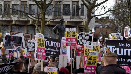 Britanya Müslüman Konseyi, El-Aksa Dostları, Savaşı Durdur Koalisyonu, Irkçılığa Karşı Dur ve Halkın Meclisi’nin de aralarında yer aldığı sivil toplum örgütlerinin düzenlediği Trump karşıtı protesto ABD’nin Londra Büyükelçiliği önünde başladı.
