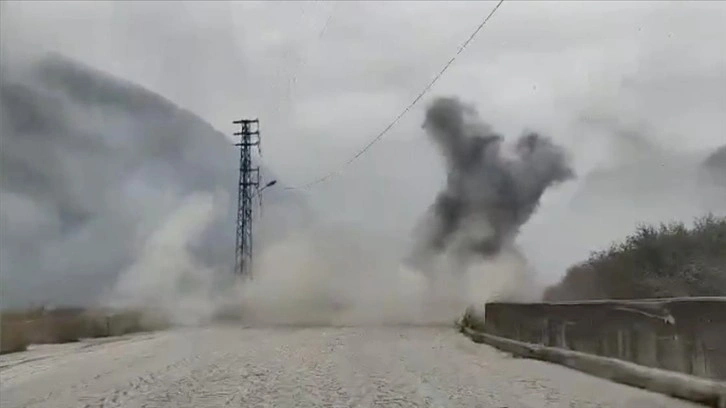 Gazetecilerin Hardali Vadisi'nden geçerken çektikleri videoda önlerindeki yolun tam ortasına bir bombanın düştüğü ve şiddetli şekilde infilak ettiği görülüyor.