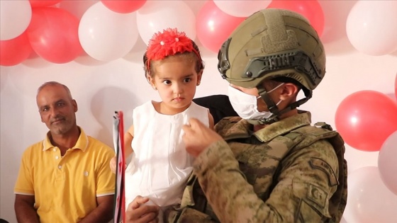 Mehmetçik, Barış Pınarı Harekatı'nın 2. yılı münasebetiyle Pınar bebeği, Sluk beldesindeki evinde ziyaret ederek doğum günü kutlaması düzenledi.