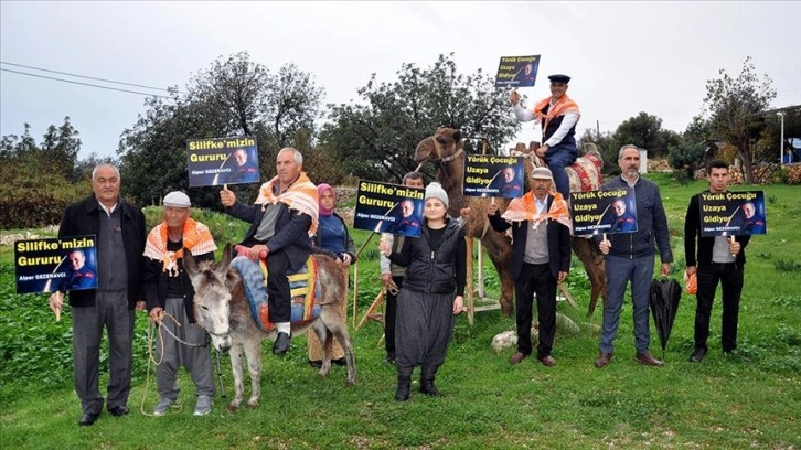 Gezeravcı'yı destekleyen sloganlar atan katılımcılar, "Silifke'mizin gururu Alper Gezeravcı" ve "Yörük çocuğu uzaya gidiyor" yazılı dövizler taşıdı.