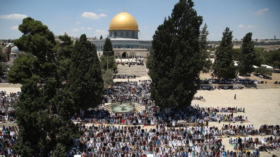 Kudüslü Müslümanlar bayram namazı için Mescid-i Aksa'ya akın etti.