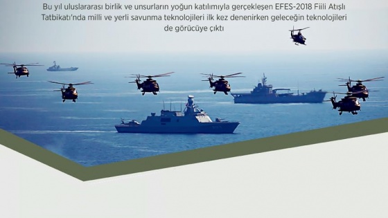 Bu yıl yüksek düzeyde uluslararası kAatılımla gerçekleşen Efes-2018 Fiili Atışlı Tatbikatı, Türkiye'nin milli harp teknoloji ve ürünlerini başarıyla test ettiği, geleceğin teknolojilerini ise görücüye çıkardığı bir organizasyona sahne oldu.