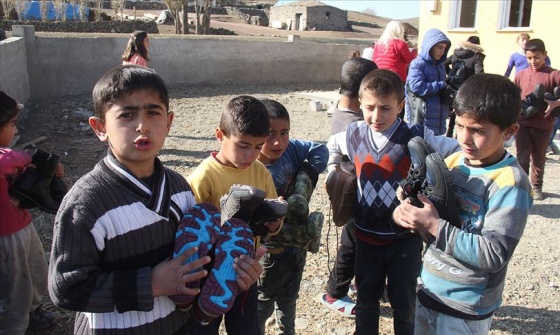 Kışlık botlarını giyen çocuklar büyük mutluluk yaşadıGüneş, daha önce köy çocuklarına yönelik oyuncak kampanyası başlattığını hatırlatarak, yetim ve öksüz 120 çocuğa da bisiklet hediye ettiklerini anlattı.