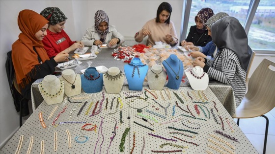 Yurttaki hocalarımız ve arkadaşlarımızla kıyafetlerin dikimini gerçekleştirdik. Kıyafetleri de bileklik, kolye, küpe gibi ürünlerle süslemek için takı tasarımına da başladık.