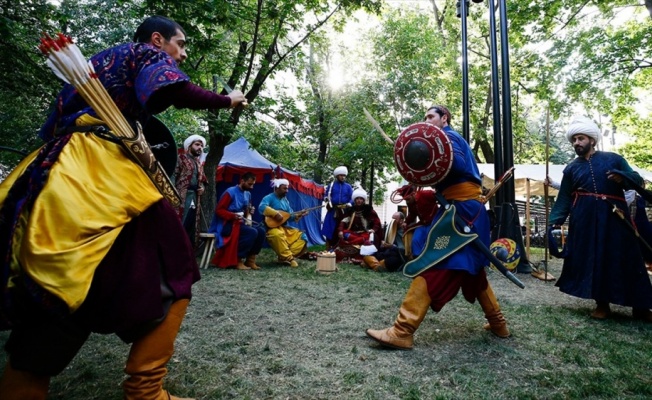 “Ordugah Tarihi Canlandırma Takımı” grubu, sembolik olarak kurulan karargahtaki otağda Osmanlı askeri hayatı ve savaş tekniklerinden örnekler canlandırdı.