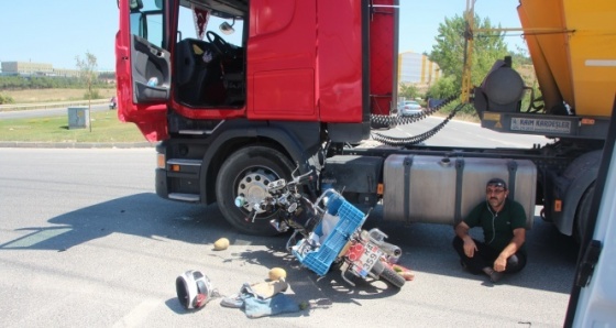 TIR sürücüsü kazanın şokunu üzerinden atamayarak, kulağında kulaklık ile bir süre yerde oturarak, 112 ekiplerinin yaralıya müdahalesini izledi. Daha sonra kaza anını anlatan TIR sürücüsü Yolcu, seyir halindeyken hızla karşıdan gelen motosikletin TIR'a çarptığı ifade ederek, "Tekerleklerin altına girseydi ben ne yapardım" diye konuştu. TIR ve motosiklet kaza yerinden kaldırılırken, TIR sürücüsü Yolcu, ifadesi alınmak üzere Çarşı Polis Merkezi Amirliğine götürüldü. Kazayla alakalı tahkikat sürüyor.
