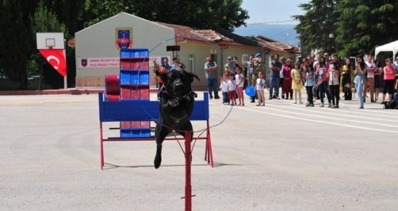 Jandarma narkotik köpeği 'Bahis' eğiticisinin tüm komutlarına uyarak silahla 'teslim ol' şeklinde çağrısı üzerine patilerini havaya kaldırarak ‘teslim olması’ alkış toplarken, bir otomobilin benzin kapağına gizlenen patlayıcı maddeyi bomba arama köpeği Uydu buldu. Gösterilerden sonra çocukların ilgi odağı haline gelen köpeklerle programa katılanlar resim çekmek için birbirleriyle yarıştı.