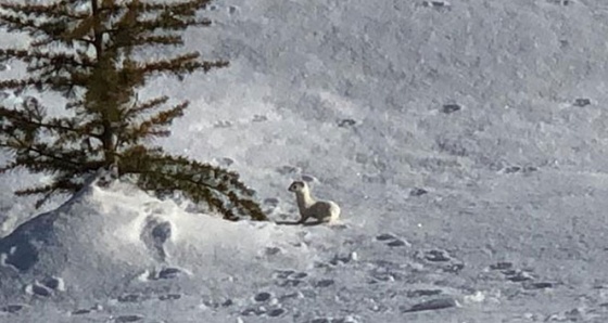 Daha çok yer altında yaşayan ve dışarı çok az çıkan, genellikle fare ve kuş yumurtaları ile beslenen beyaz gelincik, Erdoğan Özdil tarafından görüntülendi.