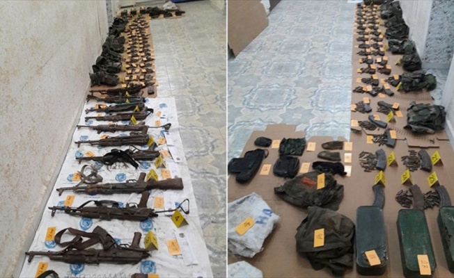 İlçe Emniyet Müdürlüğü ekiplerince, Fırat Mahallesi'nde yürütülen çalışmalarda 11 uzun namlulu silah,15 el bombası, 38 şarjör, 8 hücum yeleği, yaklaşık bin 100 fişek, telsiz, üzerinde kan bulunan 2 kıyafet, 4 çanta, 2 çuval ve kumaşa sarılı, ucunda mermi çekirdeği bulunan ip ele geçirildi.