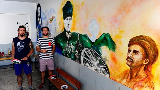 Sınıf duvarlarına da öğretmenlerin isteğine göre resimler çizdiklerini anlatan Ulusoy, eserlerinde çoğu zaman tarihi olayları yansıtmaya çalıştıklarını vurguladı.