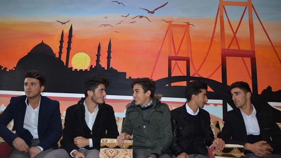 Hakkari'nin Yüksekova ilçesindeki okulda, köşe takımlarının, duvarlarında da öğretmenlerin çizdiği İstanbul'un gün batımındaki silüeti ile hat sanatı figürlerinin bulunduğu "dinlenme köşesi" hazırlandı.