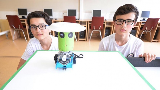 Öğrencilerden Umut Can Altıparmak ve Zeynel Boran Doğan da "bekçi" robot geliştirdi.