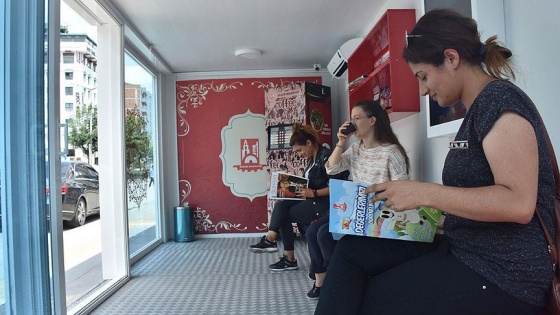 Bilecik'te kliması ve kütüphanesi olan otobüs duraklarında bekleyen vatandaşlar, bir yandan kitap okurken bir yandan makineden aldıkları kahveyi yudumlama fırsatı buluyor.