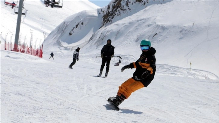 Gönüllerince eğlenen yerli ve yabancı turistler, aileleriyle kayak ve snowboard yapıp kızakla kaydı.