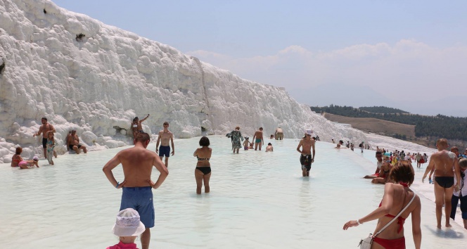 Denizli’nin travertenleriyle ünlü, UNESCO Dünya Kültür Mirası Listesinde bulunan Pamukkale, dünya genelinde yaşanan ekonomik krize rağmen ziyaretçi akınına uğruyor.
