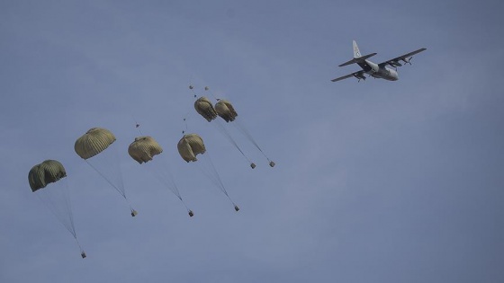 Kara operasyonlarının yanı sıra havadaki kabiliyetleriyle de terörle mücadelenin "isimsiz kahramanları" olarak bilinen komandolar, askeri nakliye uçaklarından paraşütle atlayarak gökyüzünde hünerlerini sergiledi.