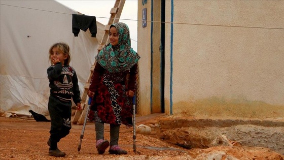 İdlib'deki AA muhabirleri, Beşşar Esed rejimin saldırılarından kaçarak İdlib'deki Ser Ceble kampında ailesiyle yaşayan ve doğum sırasındaki bir sorun sebebiyle bacakları diz altından kesilen küçük Maya'yı, okulunu ve kendisi gibi engelli babası Muhammed Ali Meri'yi ziyaret etti.