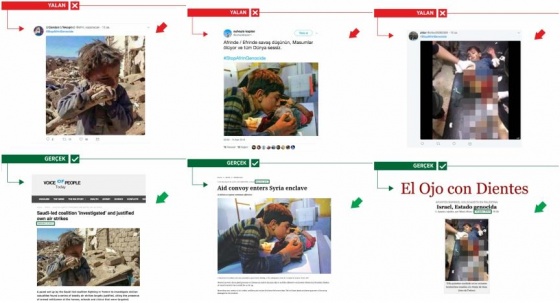 Terör örgütü PYD/PKK destekçileri, farklı yer ve olaylarda çekilmiş çocuk fotoğrafları üzerinden Türk Silahlı Kuvvetlerinin (TSK) Afrin'de yürüttüğü Zeytin Dalı Harekatı'nı karalamaya çalıştı.