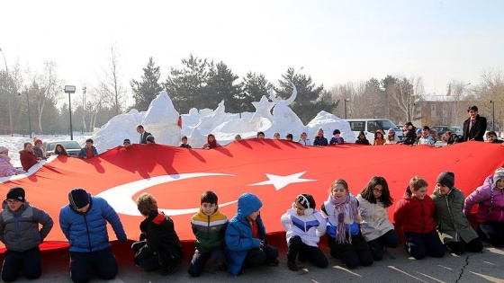Erzurum'daki ilkokul ve ortaokul öğrencileri, Sarıkamış Harekatı sırasında donarak şehit düşen askerlerin, Türk bayrağının ile Enver Paşa'nın kardan heykellerini yaptı.