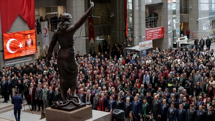 İstanbul Adalet Sarayı atrium alanında düzenlenen tören, saygı duruşunda bulunulması ve İstiklal Marşı'nın okunmasıyla başladı.