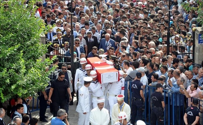 İl Müftüsü Dursun Ali Coşkun'un kıldırdığı cenaze namazının ardından, şehidin ay-yıldızlı bayrağa sarılı tabutu top arabasına alındı.