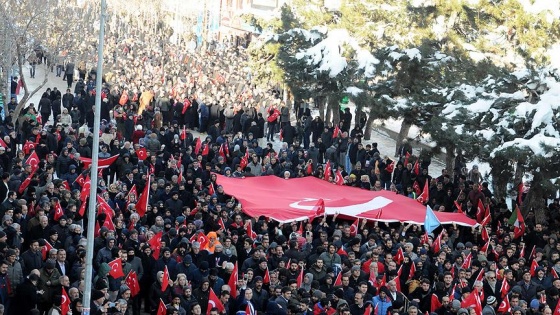 Büyük bir Türk bayrağı açan vatandaşlar, sloganlar eşliğinde 15 Temmuz Şehitler Meydanı'na kadar yürüdü.