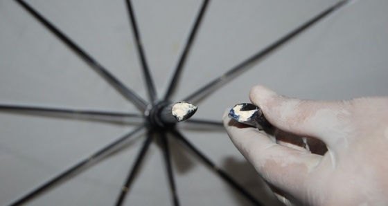 Ekipler aynı evin duvar dibindeki çuvallardan da şüphelenerek arama yaptı. Yapılan aramada 10 adet çuvalın içerisinde bulunan 790 şemsiyeye gizlenmiş vaziyette 100 bin 920 adet captagon hap eloe geçirildi. Her bir şemsiyeye 120 hap gizleyen zehir tacirleri, uyguladıkları yöntemle herkesi şaşkına çevirdi. Şemsiyelerin hepsi ancak 2 günde kırılabildi.