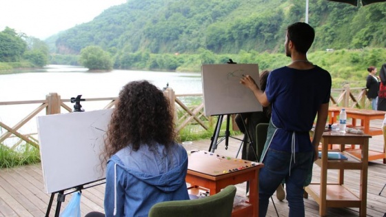 Trabzon'un önemli turizm mekanları arasında bulunan Sera Gölü Tabiat Parkı, üniversite öğrencilerince resmedildi.