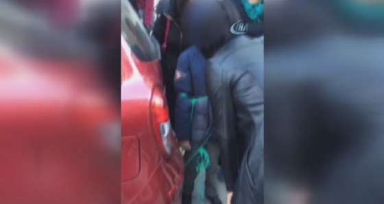 Vatandaşların tepki gösterdiği kadının ceza vermek için yaptığını söylemesi görenleri hayrete düşürdü. Edinilen bilgiye göre, bilgisayar mühendisi Ebru M. isimli kadın, 6 yaşındaki çocuğunu servise binmediği için aracını arkasına bağladı. Çamaşır ipiyle çocuğunu bağlayan kadın, vatandaşların iddiasına göre çocuğunu yaklaşık 100 metre sürükledi. Caddede sürüklenen çocuk çevredeki vatandaşların müdahalesiyle kurtarıldı. Anneye tepki gösteren vatandaşlar durumu polise bildirirken yaşananlar ise bir cep telefonu kamerasına yansıdı.