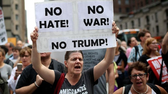 Göstericiler, Trump'ın izlediği politikalar, Charlottesville olayları ve ülkedeki ırkçı eylemleri protesto etti.