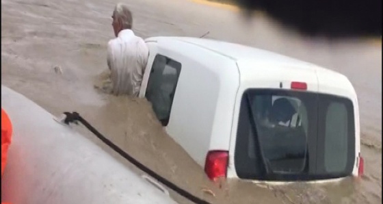 İstanbul'da birçok ilçede etkili olan sağanak yağış sonrası Silivri Mimarsinan Mahallesi'nde birçok bina sular altında kaldı. Aracı suya gömülen bir şahıs ise aracının içinde mahsur kaldı. Aracın akıntıya kapılmasıyla korku dolu dakikalar geçiren vatandaş, itfaiye ekiplerince son anda kurtarıldı. Şahsa botlarla ulaşan ekipler, son anda kurtardı.